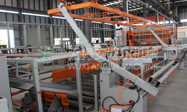 翻网机主要功能是对定长剪裁好的网片码垛进行叠翻,使得网片一正一反叠加在一起,节省空间。网片宽度适合2400mm,长6000mm。其由机架、翻网架支座、、驱动电机减速机与翻转架及翻网支架、推网与托网(输送滚筒)装置、气动装置等组成。