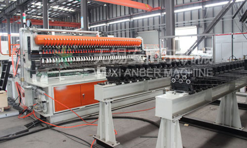 焊接网机:可以通过调节焊头和气缸的位置来达到调节网孔尺寸的目的。每个焊接点和及其电流是由可控硅和微型计算机的定时器控制可调。